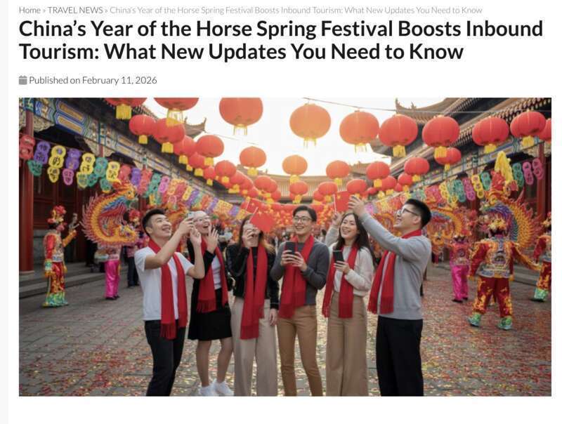 “农历马年将至,全球共庆新春的热潮推动中国文旅产业蓬勃发展。来自世界各地的游客将感受中国春节的生机与魅力,领略当代中国发展成就。”《旅行与旅游世界》写道。