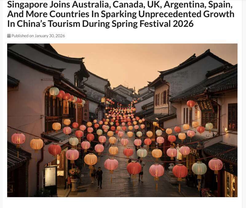 《旅行与旅游世界》观察到,春节临近,全球游客纷纷选择中国作为目的地。经济实惠的航班、相近的文化认同,以及精彩纷呈的节庆促销活动,使中国成为新加坡游客青睐的旅游目的地。近期,新加坡赴华旅游的预订量大幅增长,北京、上海、西安等城市位居热门目的地前列。在加拿大、英国和澳大利亚,也有越来越多的人将目光投向中国这个兼具历史底蕴与时代活力的国家。北京厚重的历史文化、桂林秀美的自然风光、杭州雅致的灯景,都让人心生向往。